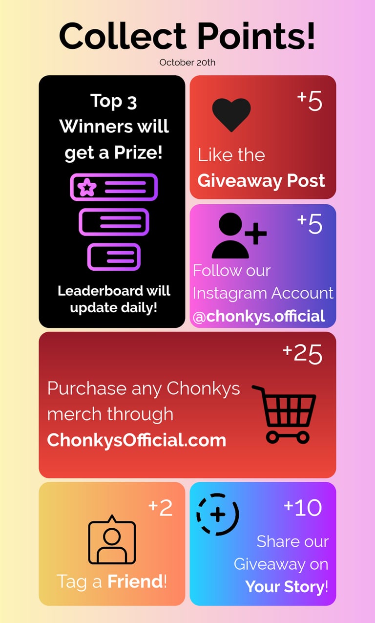 +5 points - Follow @chonkys.official on Instagram